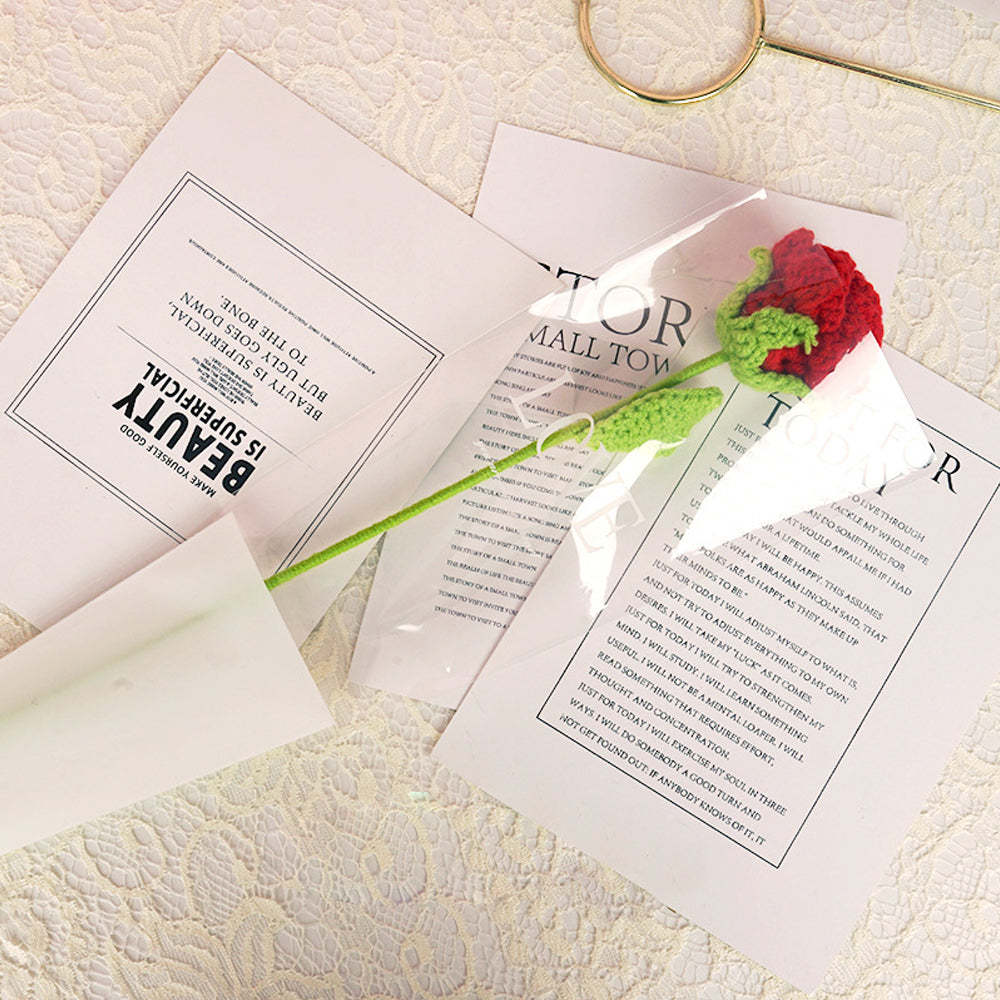 1pc Crochet Red Rose Handmade Knitted Flower