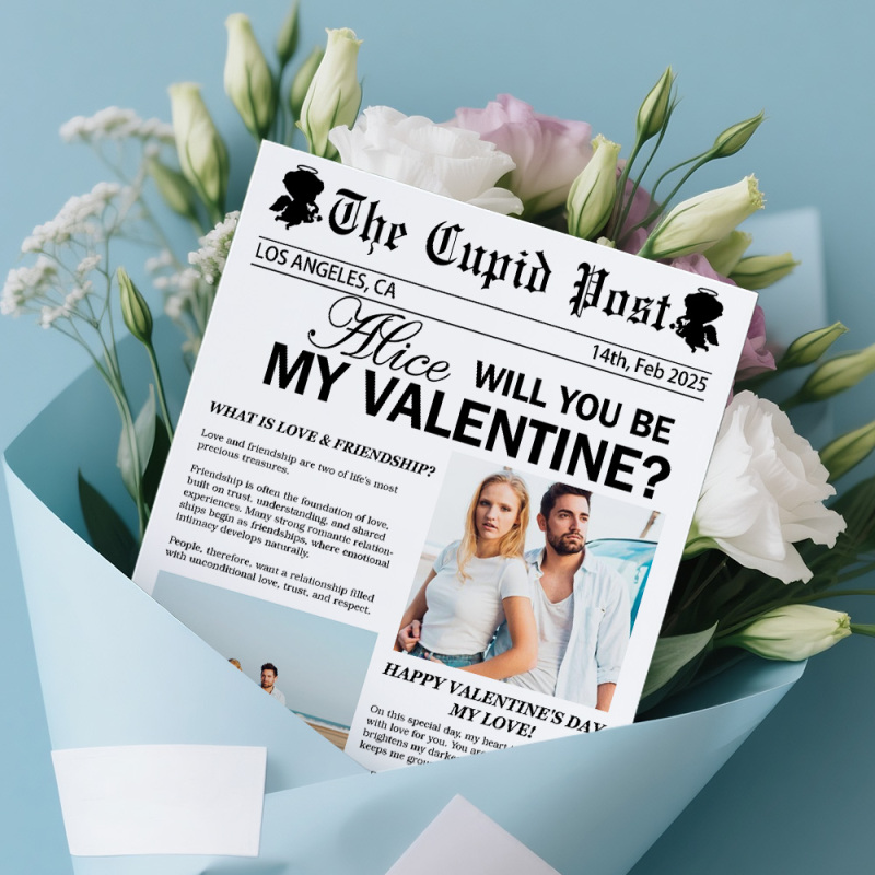 Custom Be My Valentine Newspaper Poster Cupid Post Valentin's Day Newspaper Post Surprise For Girlfriend Boyfriend