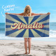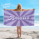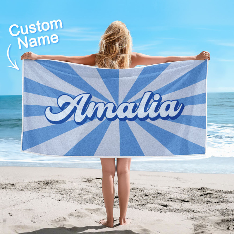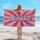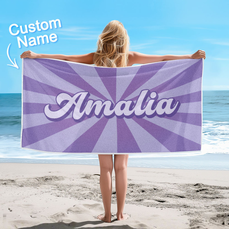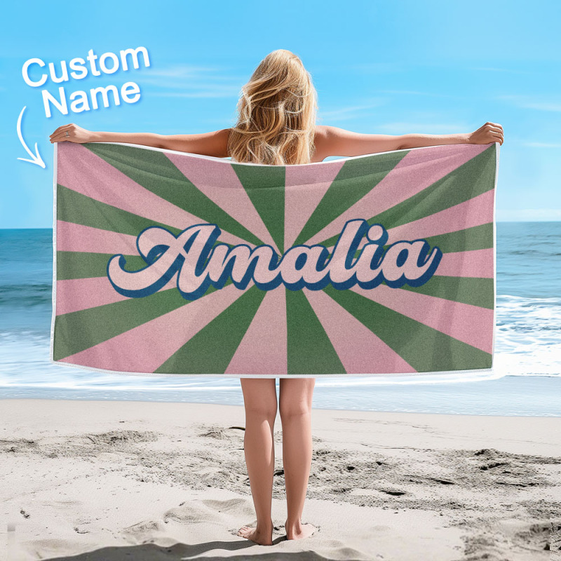 Custom Beach Towel with Name Burst Style Stripe Pattern Outside Vacation Gift