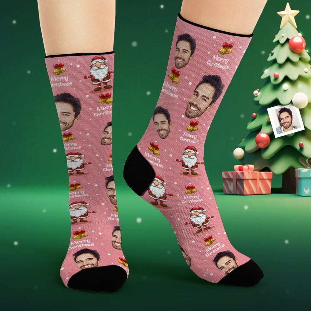 Custom Face Socks Personalized Photo Pink Socks Merry Christmas