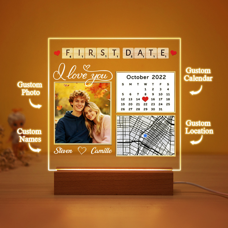 Custom First Date Night Light Personalized Photo Acrytic Lamp Unique Anniversary Gift for Couples, Wedding Keepsake