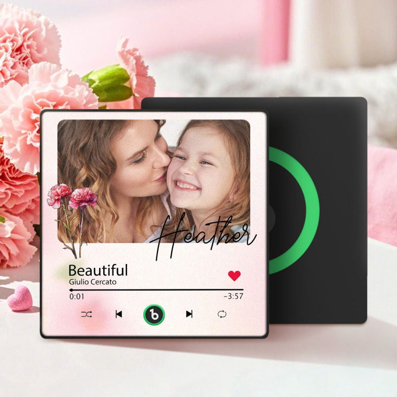 Custom Mother's Day Music Fridge Magnet Flower Face & Text Personalized Photo Frame Gift for Mom