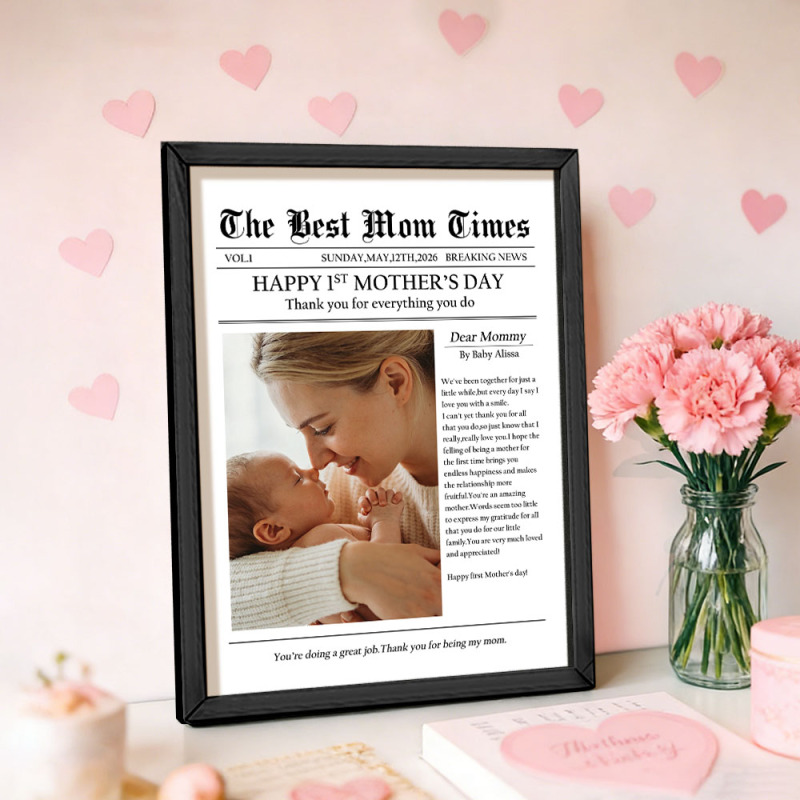 Custom Newspaper Style Photo Frame - Personalized Mother's Day Gift with Custom Text & Photo