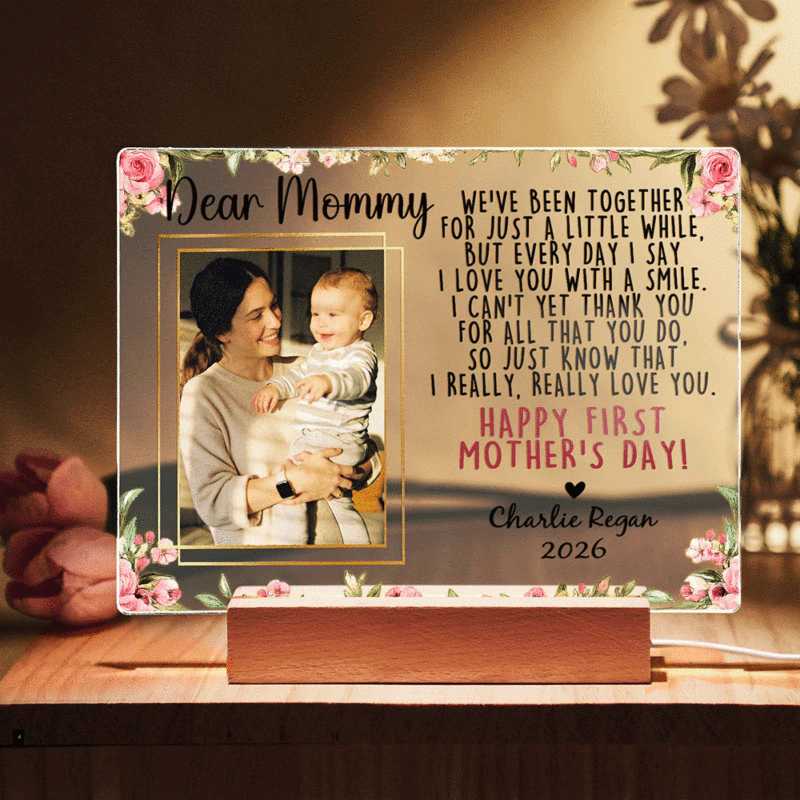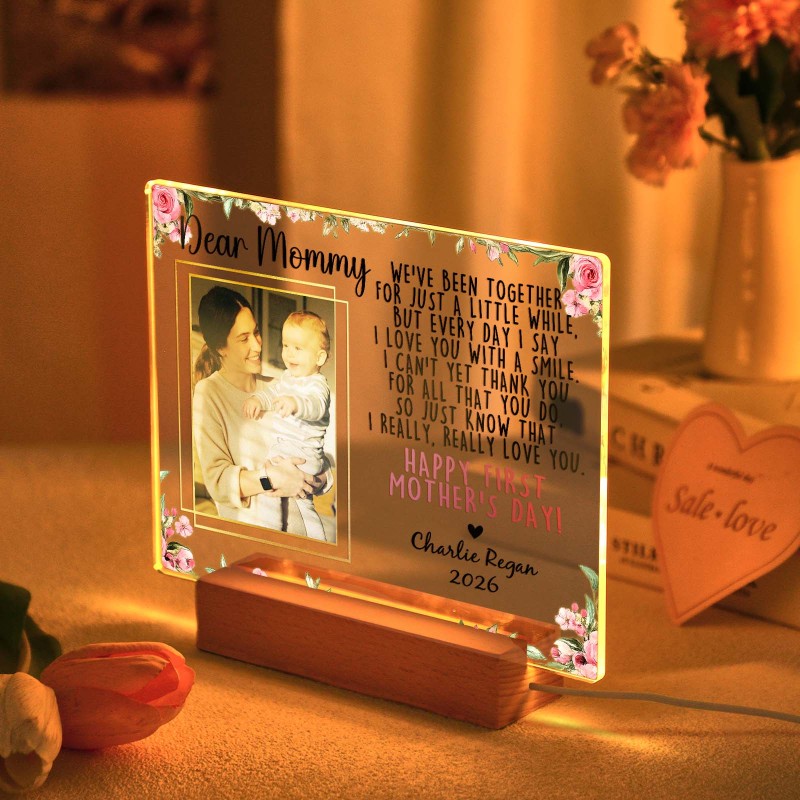 Custom Photo Acrylic LED Night Light – Personalized Mother's Day Gift for Mum