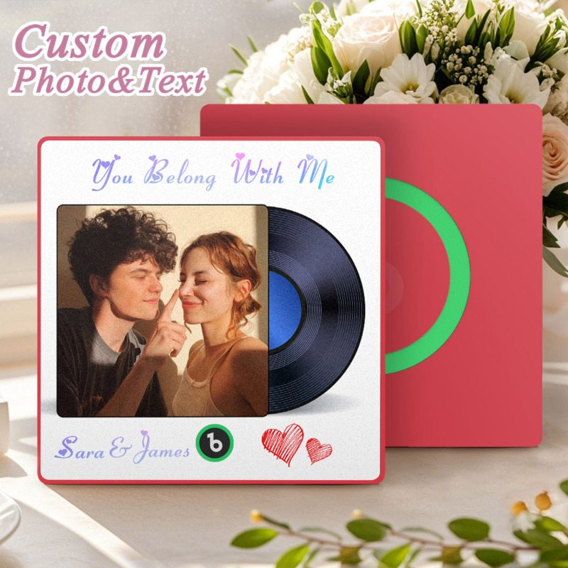 Custom Photo and Text Music Fridge Magnet Frame Music Wall Photo Sticker Music Disc Style Anniversary Gift