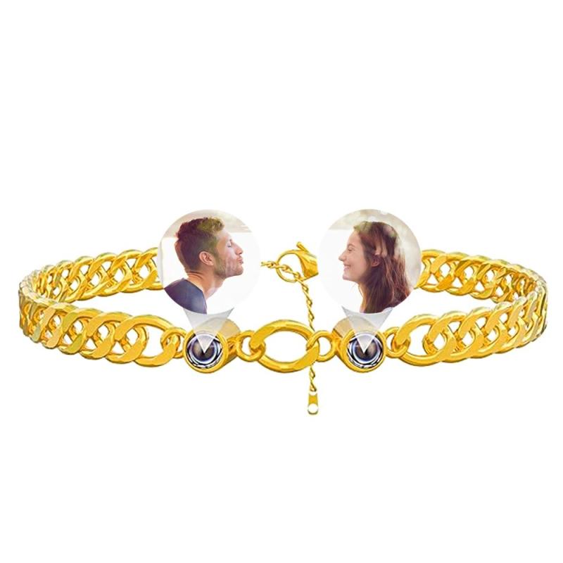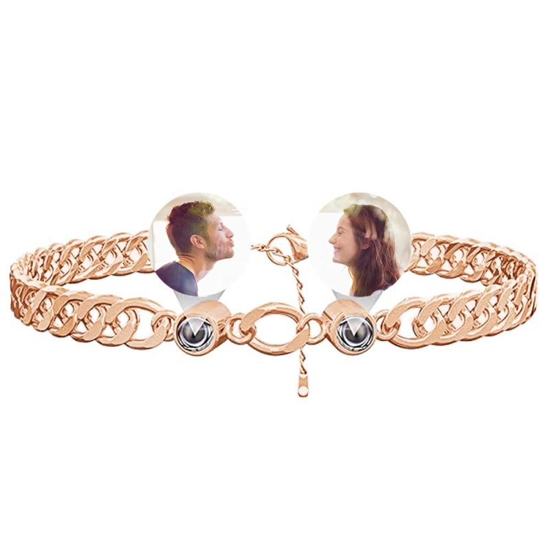 Custom Photo Projection Bracelet Personalized Double Bead Adjustable Bracelet Gifts For Couple