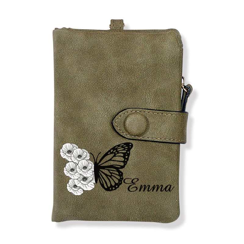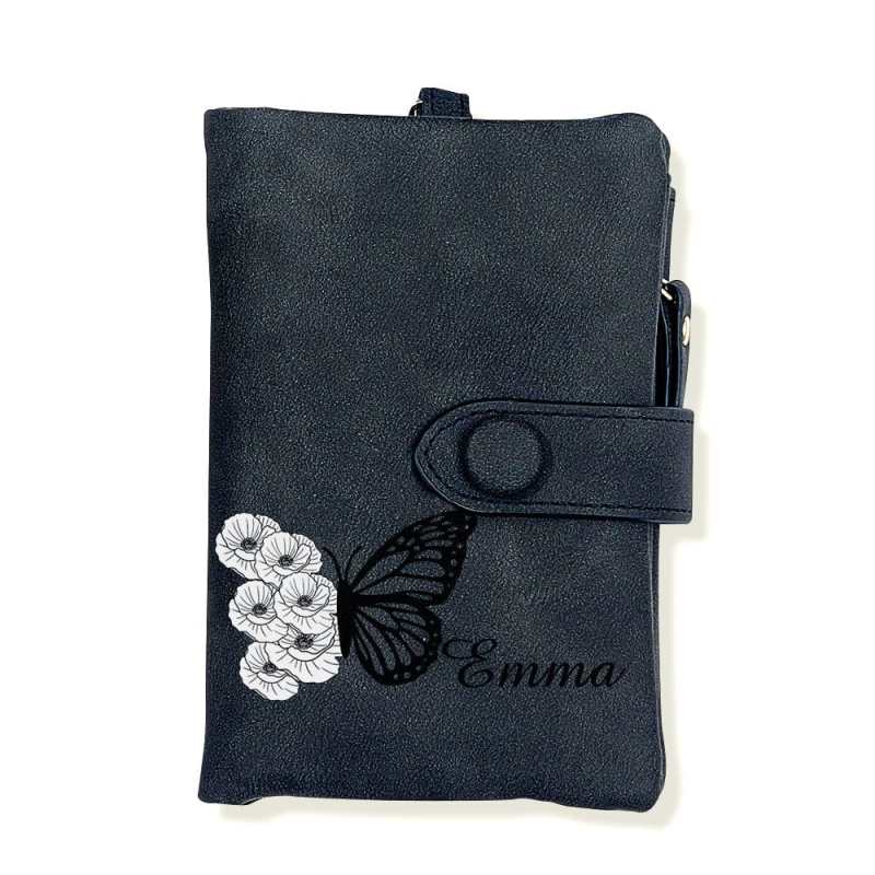 Custom Tri-Fold Butterfly Birth Flower Leather Wallet with Coin Holder Personalized Mother's Day Gift for Woman