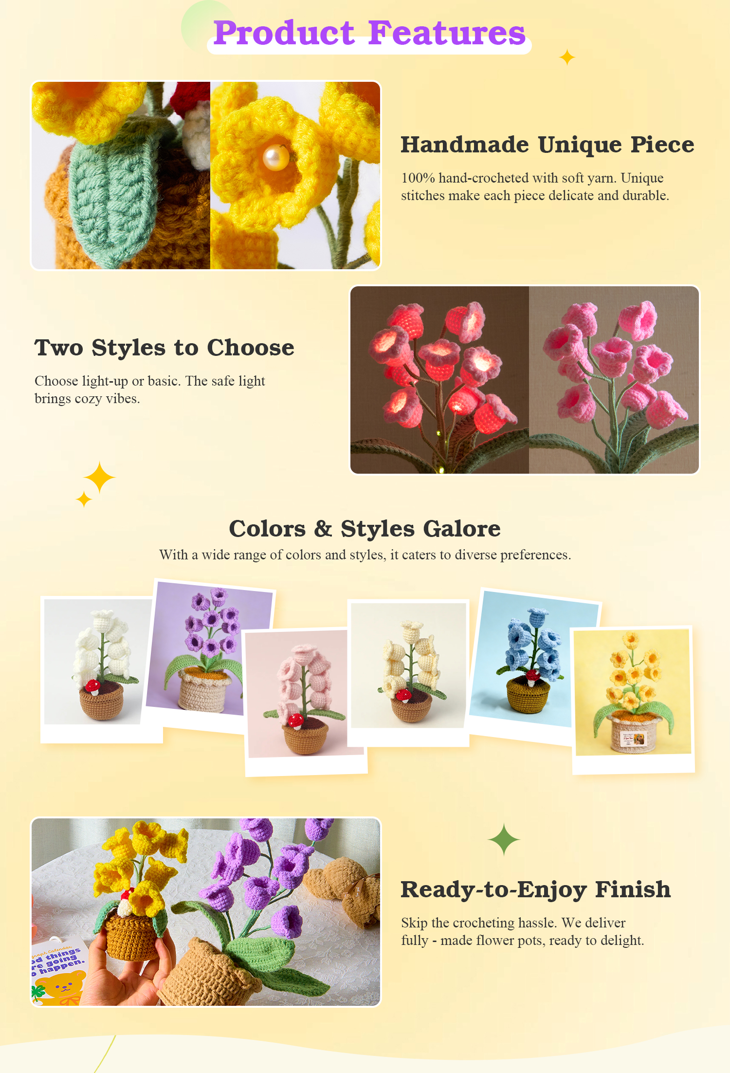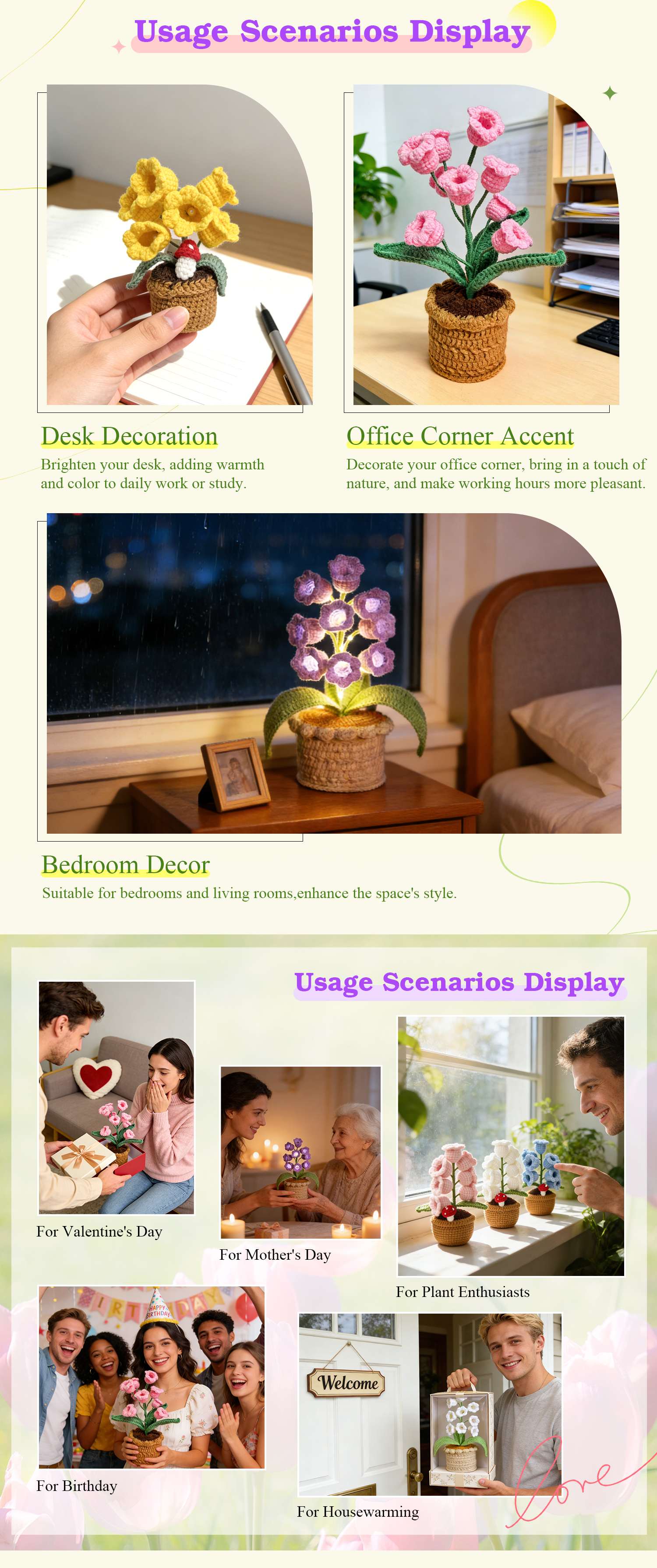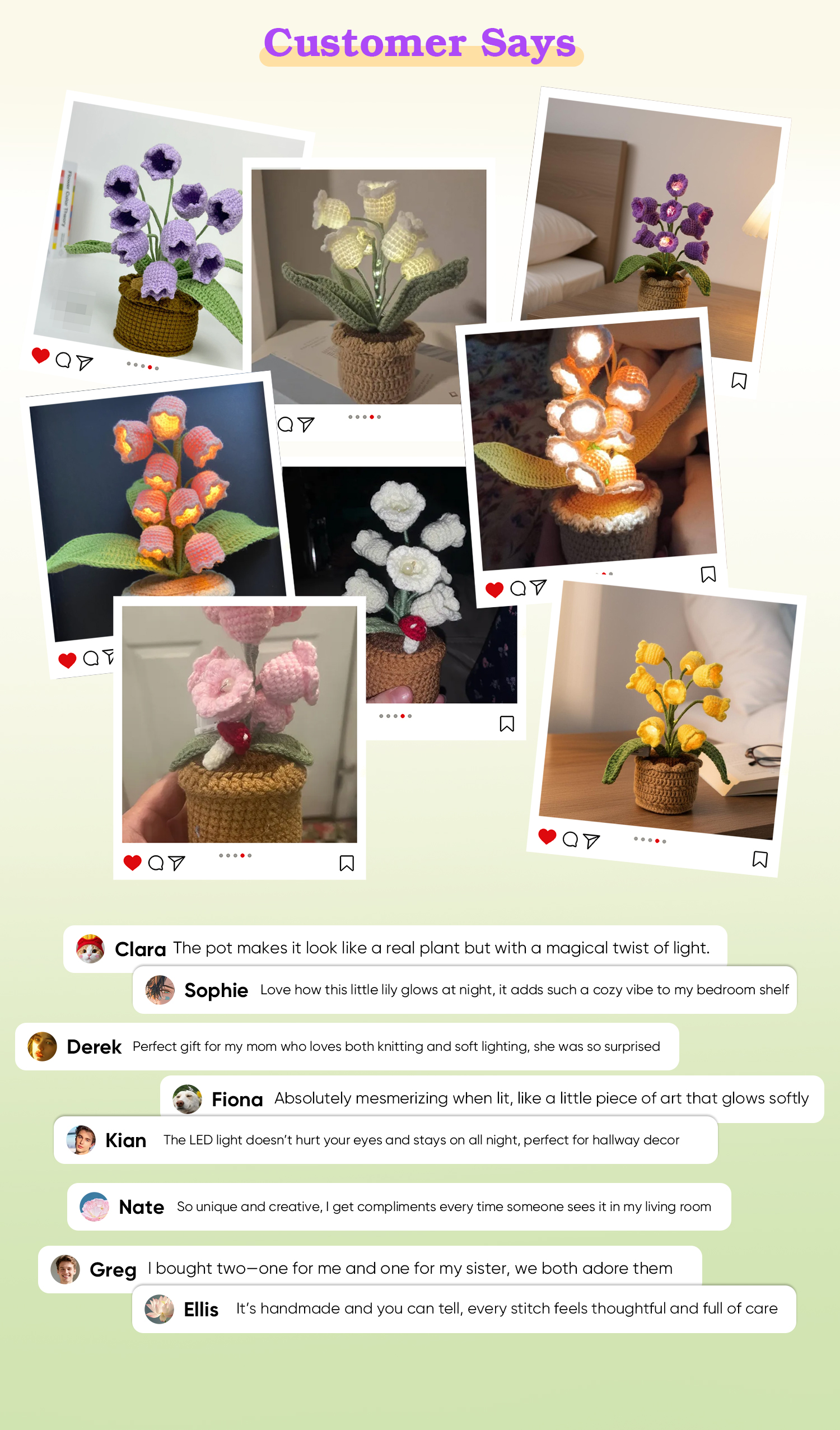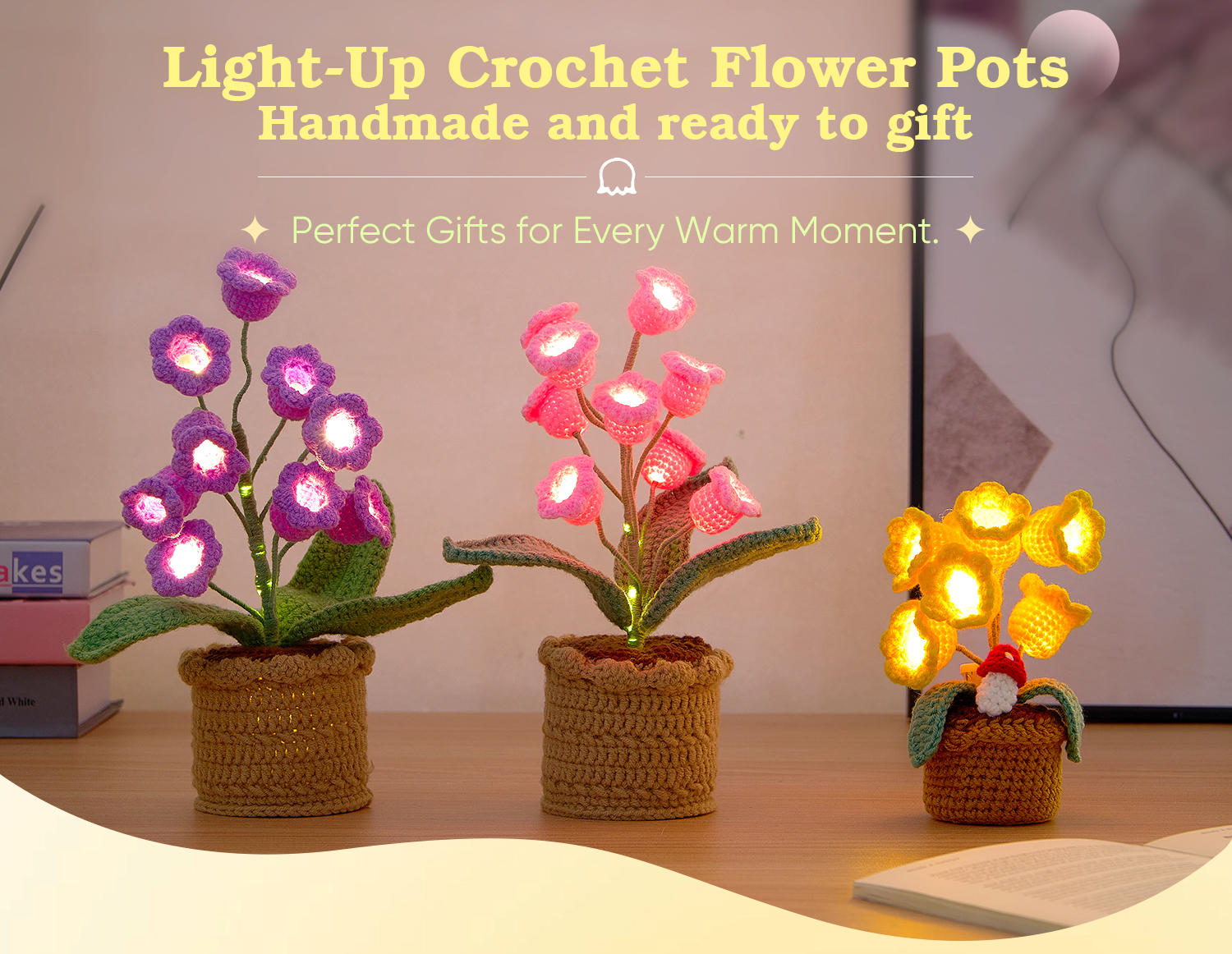 LED Light Crocheted Lily of the Valley - Glowing Potted Knit Flower Home Ambiance Decor