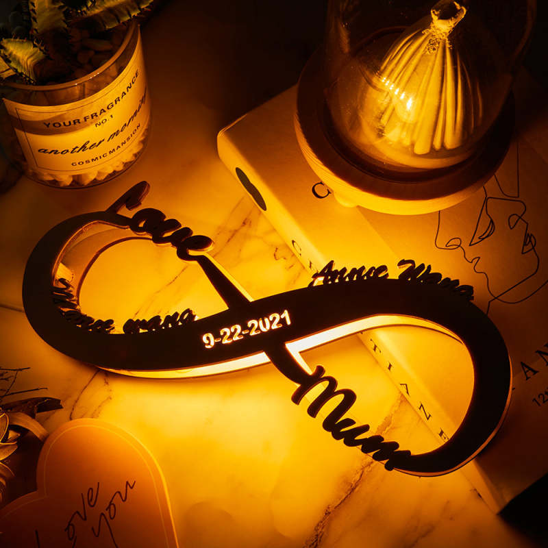 Custom Wooden Nightlight Mother's Day Gift for Mum Name Sign Personalised Name Lamp Infinity Gift For Mum