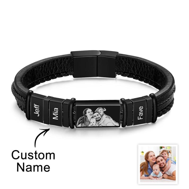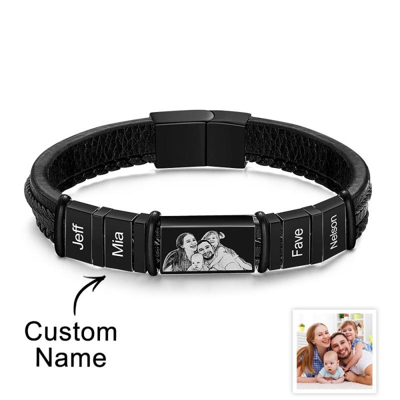 Personalized Bracelets Customized 1-6 Name Bracelets With Photo Souvenir Gift for Man