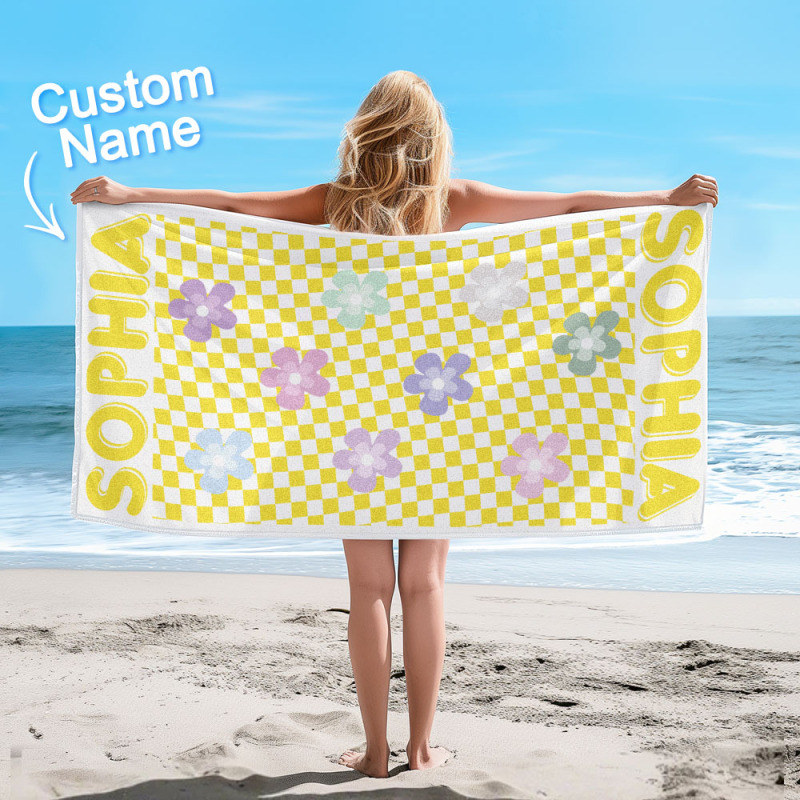 Personalized Floral Beach Towel Retro Multi Style Vacation Gifts